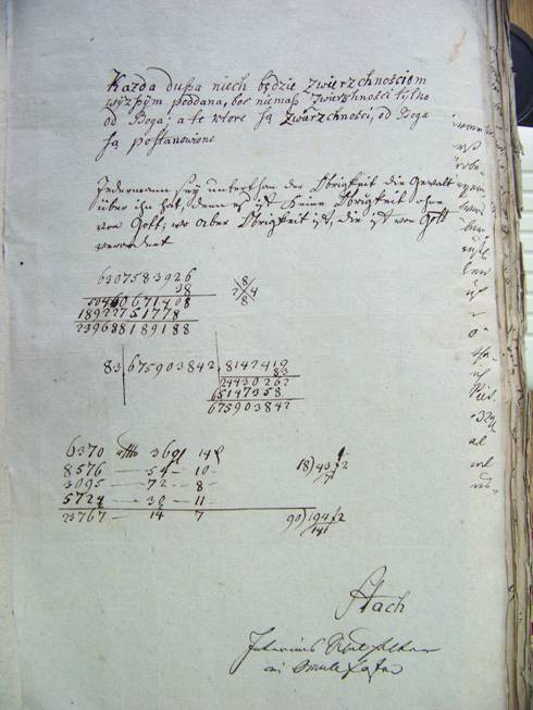 W roku 1819 na stanowisku nauczyciela mianowany został Michael Stach, wikariusz kościoła ewangelickiego, który sprawował tę funkcję w latach 1819-1840. Na temat jego zatrudnienia zachował się dokument, który jest odpowiednikiem dzisiejszej umowy o pracę. „Pracodawcą” jest Stowarzyszenia szkolne (Schulsozietäten), o którym wspomniano wyżej.