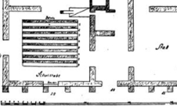 W rzucie poziomym szkoła wyglądała tak, jak na schemacie po prawej (ilustracja z książki J. Brehma).