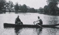 Während der Damm am Fluss geschlossen war, füllte sich der Wassertank, und dann wurde das Wasser während des Betriebs des Sägewerks allmählich abgelassen. Auf dem Foto unten - ein Blick auf den gefüllten Pool. Es befand sich im alten Flussbett des Omulew, war etwa 60 m breit und etwa 600 m lang