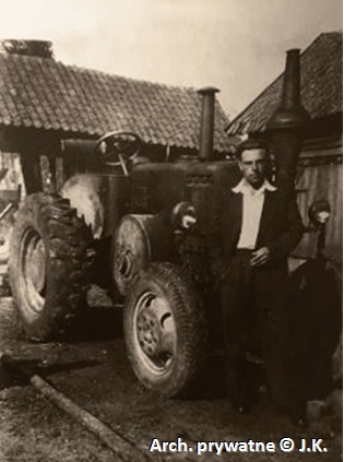 Mitte der 1950er Jahre wurden die Pferdekarren nach und nach von den mechanischen Geräten ersetzt. Die erste mechanisierte Ausrüstung bestand aus einem URSUS C 45 Traktor und einem langen Anhänger. Zunächst hielten die Fahrer diese Traktoren mit ihrer Ausrüstung in ihren privaten Räumlichkeiten. Das Foto unten zeigt nur einen dieser Fahrer mit seinem Traktor auf seinem eigenen Grundstück. Diese Gebäuden im Hintergrund gibt es heute nicht mehr, sie wurden abgebaut