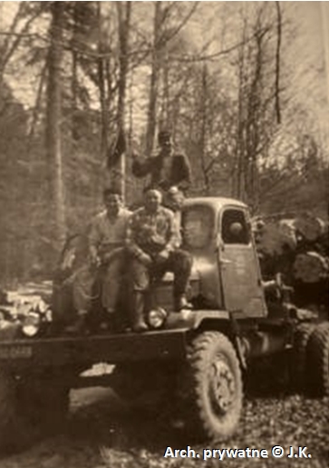 Anfang der 1960er Jahre wurde in Kot eine Transportbasis eingerichtet. Es war das Forsttransportzentrum (kurz OTL). Der Sitz dieser Firma befand sich zusammen mit den Hauptreparaturwerkstätten in Olsztynek. Die Abteilung in Kot war eine der vielen Brigaden in einem Umkreis von ca. 40 km von Olsztynek. Der erste Vorarbeiter war der zuvor erwähnte Owsianka Wincenty, und die nächsten Vorarbeiter dieser Einheit waren Herr Franciszek Kiwicki und Mieczysław Głażewski. Der Maschinenpark bestand je nach Zeitraum aus 6 bis 8 Fahrzeugen. Dies waren die oben genannten Ursus-Traktoren und die langen Lastwagen "Tatra" und "Praga". Der Platz, auf dem diese Fahrzeuge geparkt waren, wurde rund um die Uhr eingezäunt und überwacht. Auf dem Gelände befanden sich hölzerne Lagerbaracken für technische Ausrüstung, eine Tankstelle mit einem Spender und eine hölzerne Bürobaracke (allgemein als "Schuppen" genannt), in dem der Vorarbeiter und der Hausmeister, der die Einrichtung in zwei Schichten bewachte, "Büro" waren. Unten auf dem Foto eine solche Brigade auf "seinem" Lastwagen genannt "Praga".